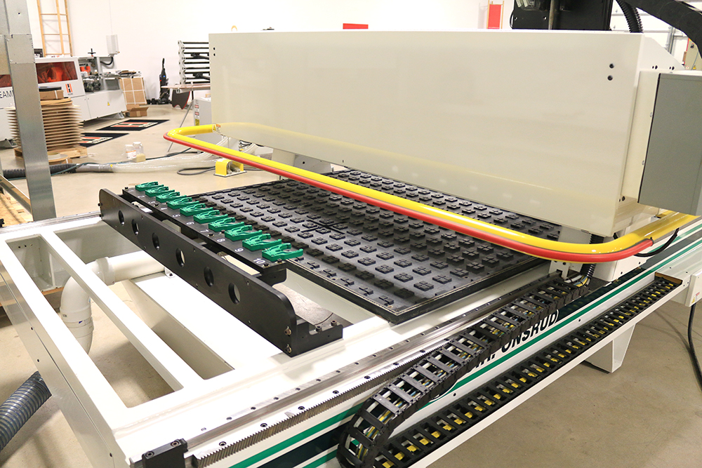 Standard with Onsrud Universal High Flow Vacuum Table System suitable for flow-through spoil boards, dedicated fixtures, or easily upgradable for pod systems.